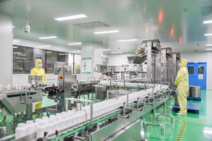 據(jù)了解,園區(qū)的照明、制冷,生產(chǎn)用電、用水等優(yōu)先依靠自建的2.3兆瓦屋頂光伏電站。每年園區(qū)自發(fā)電量為315萬(wàn)度,可減少煤炭消耗2003噸,相當(dāng)于減少二氧化碳排放5248噸。2024年,園區(qū)的二氧化碳排放強(qiáng)度為0.03噸二氧化碳當(dāng)量/萬(wàn)元,遠(yuǎn)低于全球平均水平。 在降低能耗上下狠功夫的同時(shí),園區(qū)在推動(dòng)資源循環(huán)利用上頻出實(shí)招,一方面委托具備資質(zhì)的物資回收公司將生產(chǎn)過(guò)程原輔料包裝材料全部回收,使工業(yè)固體廢物綜合利用率達(dá)到100%,另一方面將生產(chǎn)過(guò)程中產(chǎn)生的廢水收集到廠區(qū)污水站深度處理后,用于灌溉園區(qū)的花草樹木,讓資源在循環(huán)利用中發(fā)揮最大效益。 當(dāng)前,園區(qū)已經(jīng)全面通過(guò)ISO9001、ISO14001、ISO22000、ISO45001、ISO50001國(guó)際體系認(rèn)證,在食品安全、產(chǎn)品質(zhì)量、環(huán)境保護(hù)等領(lǐng)域均達(dá)到國(guó)內(nèi)領(lǐng)先水平。 GMP車間里藏著“綠色密碼” 洗手、消毒、換衣、除塵……每一位進(jìn)入園區(qū)生產(chǎn)車間的人員都要經(jīng)過(guò)這一系列繁瑣的程序。反光的地面、不著一絲污跡的角落、自動(dòng)化運(yùn)轉(zhuǎn)的精密儀器、燈火通明的車間,這里看上去更像是一間偌大的、枕戈待旦的手術(shù)室。