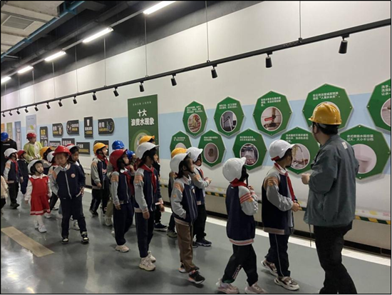 全地埋設計不僅將污水處理構筑物全部隱藏于地下,更通過密閉空間對設備噪聲進行收集處理,對臭氣實施100%集中凈化,徹底打破了“污水處理廠=臟臭源”的固有認知。 更令人欣喜的是,這座綠色工廠已成為傳播生態(tài)文明理念的重要載體。作為合肥市生態(tài)環(huán)境教育基地,胡大郢凈水廠每年舉辦超過20場“節(jié)水課堂進校園”活動,把“一滴污水的低碳之旅”故事送進十余所中小學。孩子們通過樂高模型模擬污水處理流程,在寓教于樂中種下綠色發(fā)展的種子。 在胡大郢凈水廠“國企開放日”活動中,孩子們戴著安全帽穿越地下處理車間,直觀見證污水處理的“碳足跡消弭”過程。“污水變清水的旅程,也是碳減排的旅程。”稚嫩的聲音里,飽含著對未來綠色生活的向往。 從地下到地上,從治理到教育,胡大郢凈水廠以創(chuàng)新的立體布局、先進的環(huán)保技術、生動的科普實踐,走出了一條生態(tài)優(yōu)先、綠色發(fā)展的新路徑。它不僅是環(huán)巢湖生態(tài)保護的一張“活名片”,更是新時代城市與自然和諧共生的生動注腳。在這片曾經(jīng)可能被視為“邊緣地帶”的土地上,正在上演一場關于綠色轉型、空間重構與生態(tài)文明的時代敘事。