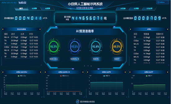 在這里,先進的技術與環(huán)保理念相融合。廠區(qū)部署的人工智能水務系統(tǒng),將數(shù)據(jù)監(jiān)控平臺、曝氣智能控制、回流智能調控等核心模塊編織成一張覆蓋“工藝全流程、監(jiān)測全斷面、參數(shù)全維度”的智能化網(wǎng)絡。在線預警算法如同24小時值守的“環(huán)保哨兵”,精準識別水質超標、數(shù)據(jù)異常等情況,實現(xiàn)從預警提醒到運維存檔的全流程閉環(huán)管理,極大地提升了水廠的應急處理能力和管理水平。智能巡檢系統(tǒng)則像不知疲倦的“技術專家”,通過自動化分析將工藝調控精度提升30%以上,大幅減少人工干預的需求,為污水處理行業(yè)數(shù)字化轉型樹立了技術范本。 再將視線從小倉房凈水廠的數(shù)智化運行移到綠色能源版圖上,一幅清潔低碳的新圖景徐徐展開——1.8兆瓦光伏電站如藍色綢緞鋪展在廠區(qū)上空,在陽光照耀下,源源不斷釋放出綠色動能。每年200萬度的清潔電力不僅滿足廠區(qū)綠色用電需求,更以“污水廠+光伏”的創(chuàng)新模式,將污水處理設施向“碳減排樞紐”升級。這種“資源循環(huán)+綠色低碳”的路徑,使廠區(qū)每年的碳減排效果相當于種植冷杉樹11萬棵,以實打實的生態(tài)效益詮釋綠色發(fā)展的時代內涵,成為污水處理行業(yè)向“雙碳”目標沖刺的標桿案例。